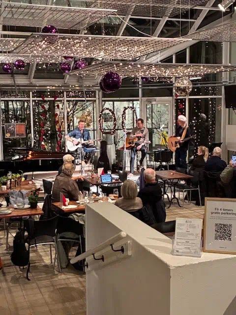 Caféscenen i Farum Kulturhus står klar med anlæg, mikrofoner, et fantastisk flygel og guitar, hvis man har brug for det.